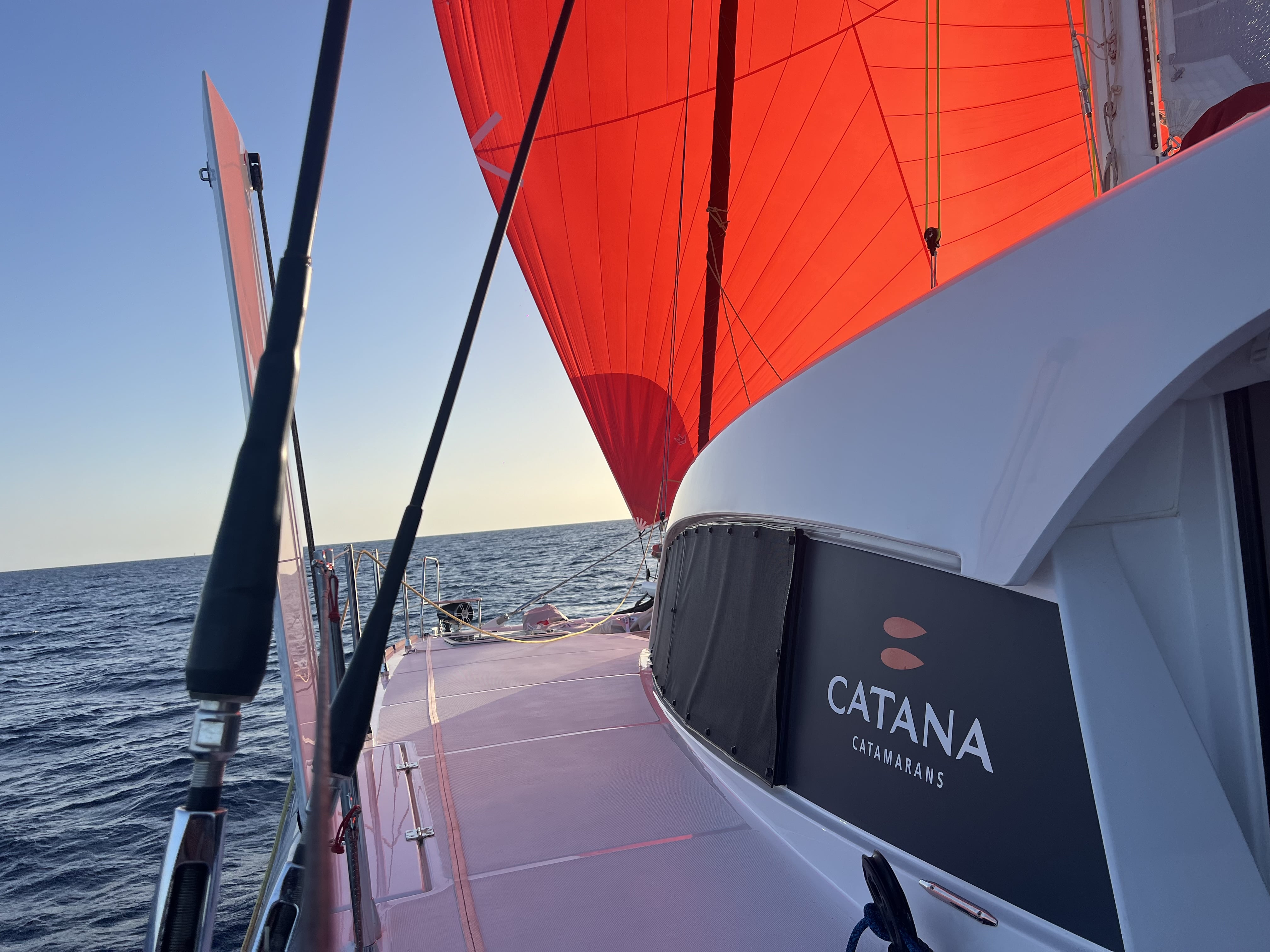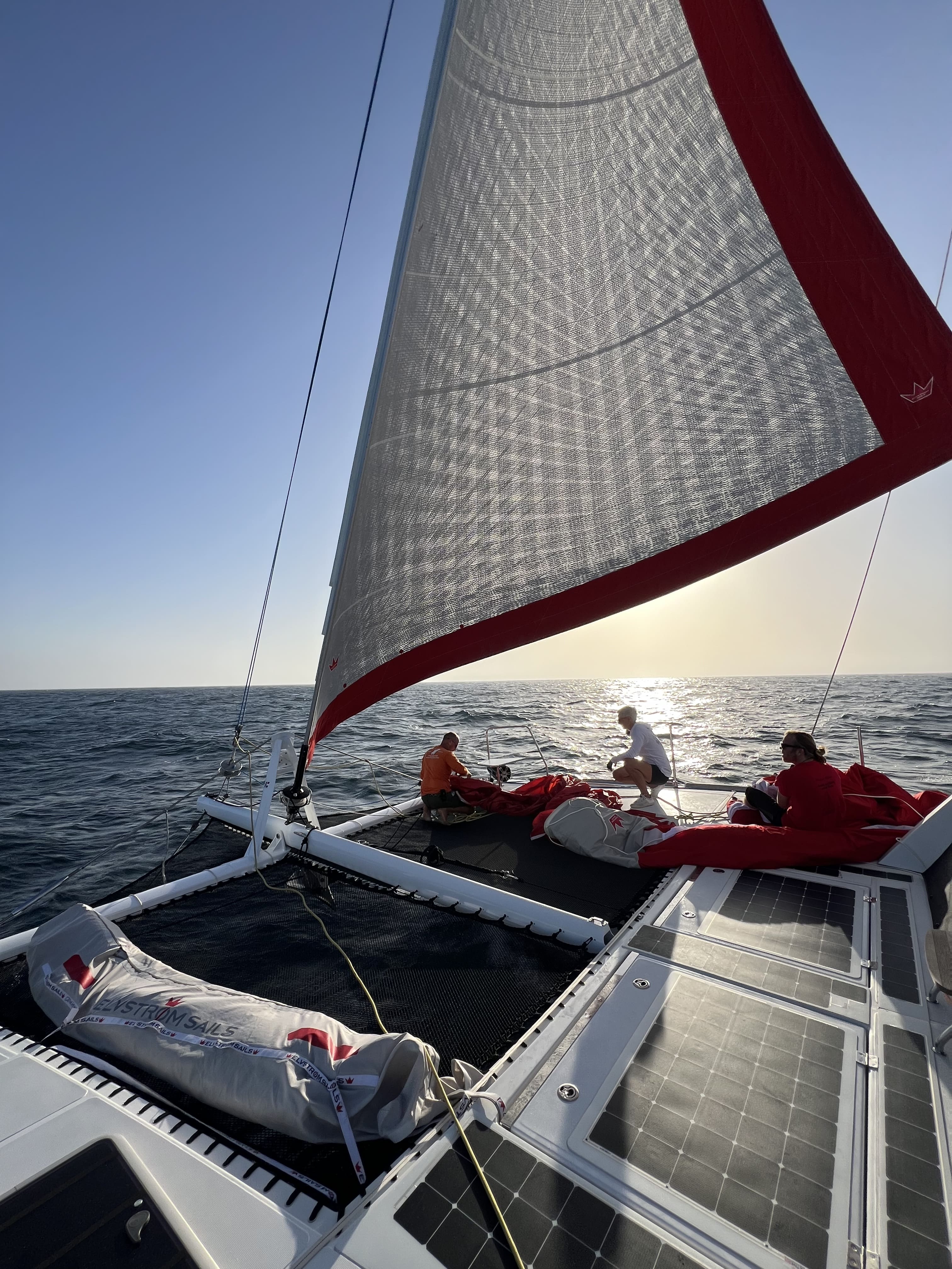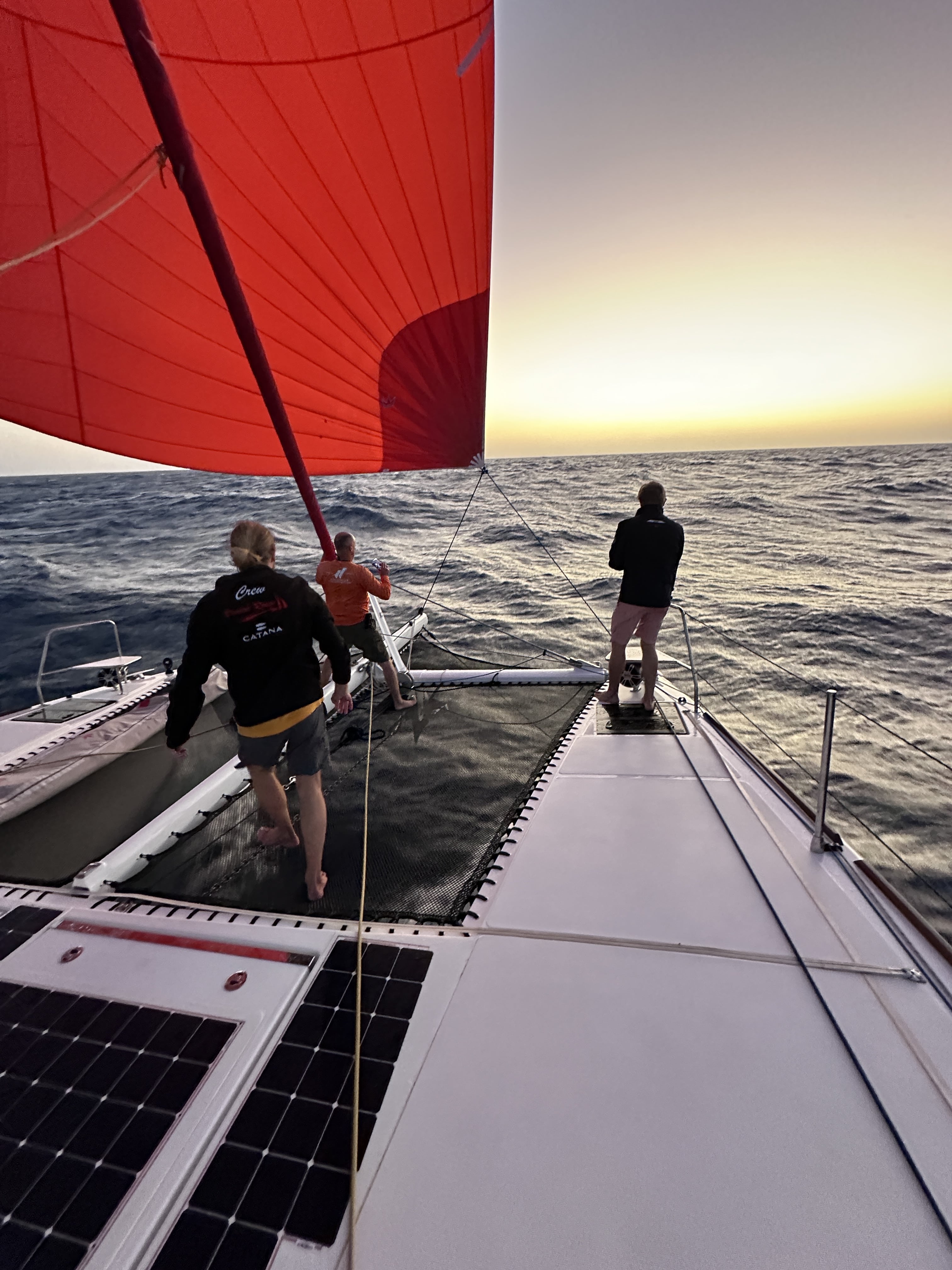 La nuit dernière a été marquée par un exploit : nous avons établi un record avec 251 milles nautiques parcourus en 24 heures, soit une moyenne impressionnante de 10,4 nœuds. Juste derrière, O’vive, le deuxième CATANA OC 50 engagé dans la course, nous pousse à maintenir un rythme soutenu et ne semble pas prêt à nous laisser la victoire si facilement !
