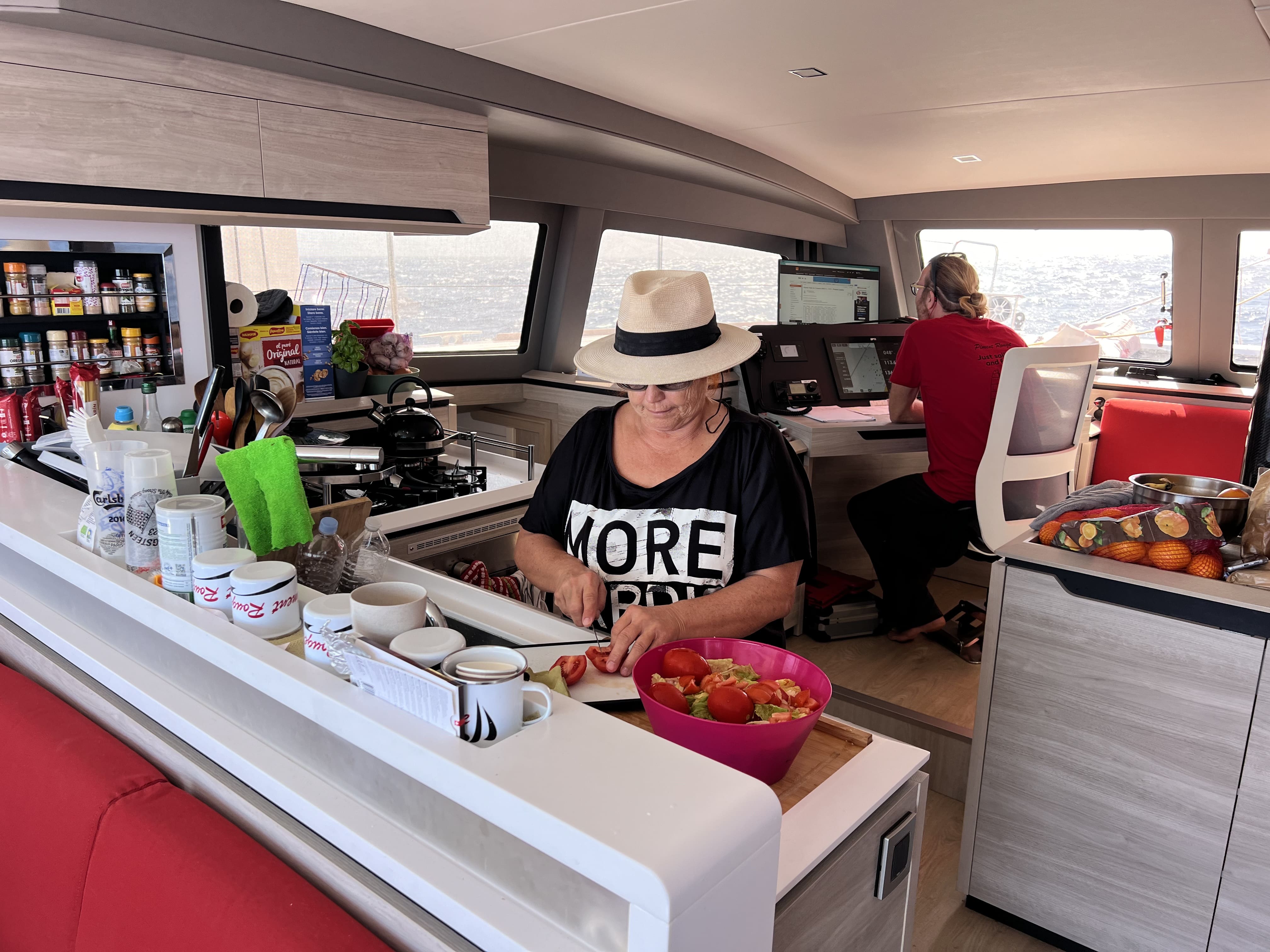 L’ambiance à bord de Piment Rouge est tout simplement fantastique ! Je fais la connaissance de personnes passionnées, compétentes et qui savent apprécier les moments de fête. Cela ne fait que confirmer les propos du propriétaire : « Piment Rouge, c’est une grande famille venue de tous horizons, partageant des aventures inoubliables à bord d’un bateau extraordinaire. »